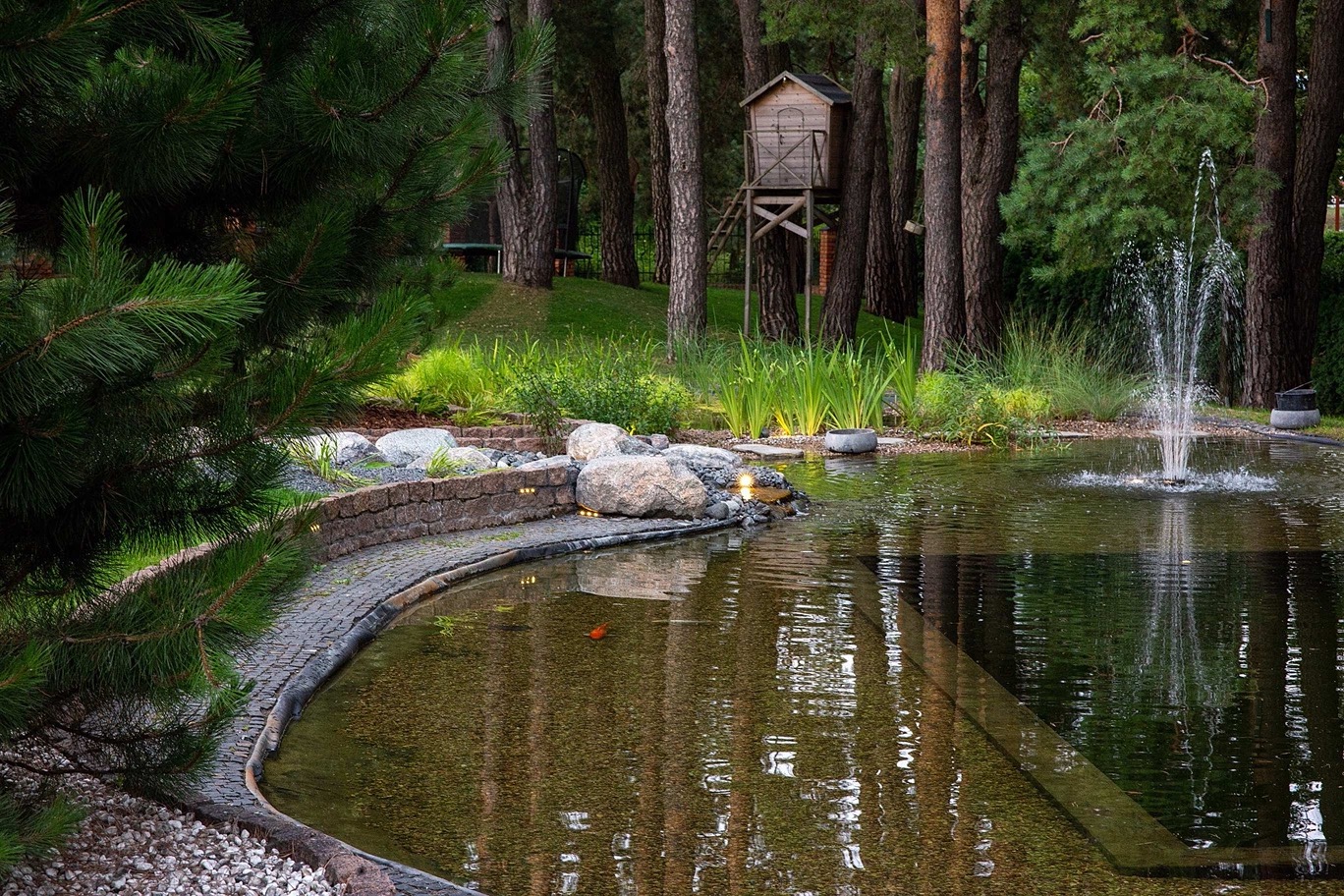 Here, water becomes not only a design element but also the site’s main connector—quietly guiding you through the plot and giving it a unique character.