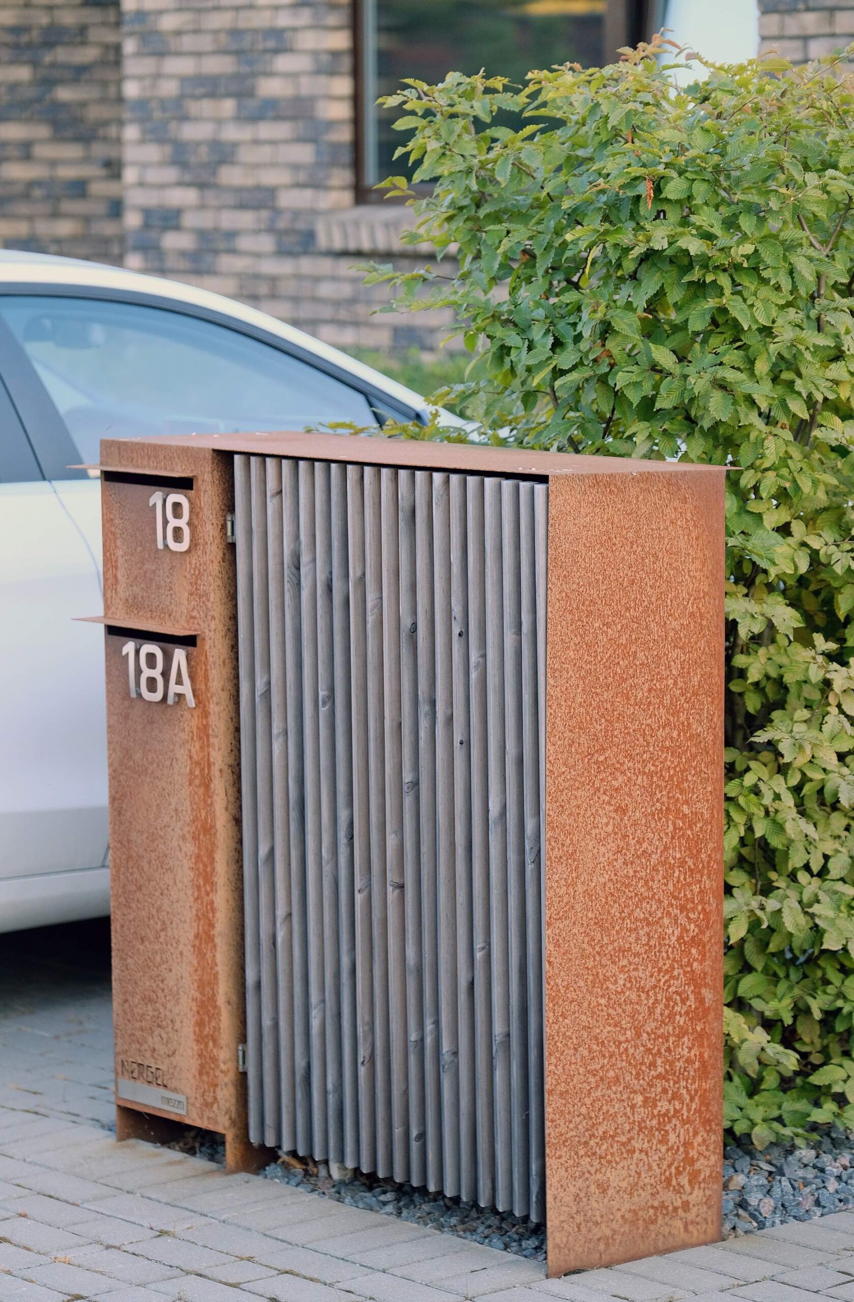 This carefully thought-out 6-are plot design creates a world of its own. To preserve a greater sense of space, it was decided not to install a fence on the front (street-facing) side of the house. In the backyard, the lawn was abandoned and every piece of ground was given purpose. In every season, the view through the living room’s floor-to-ceiling windows offers a beautiful landscape. The terrace and the living area are sheltered by a decorative canopy that lets light through while reducing heat.