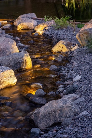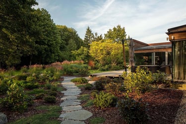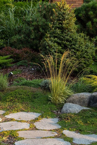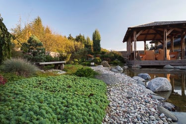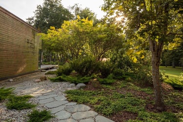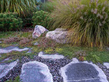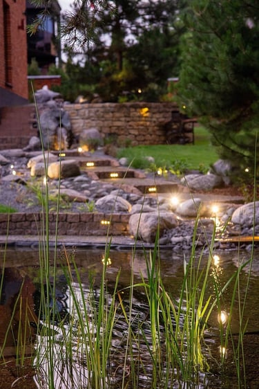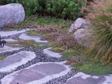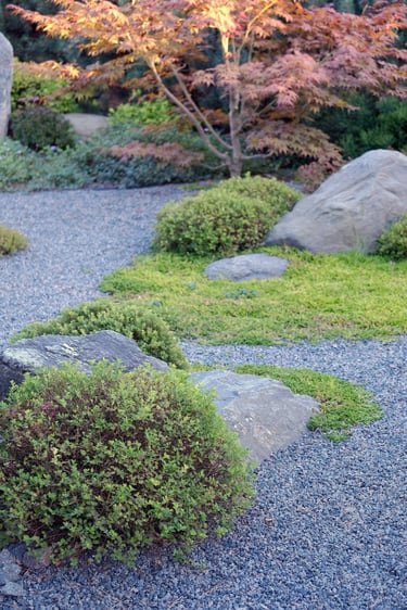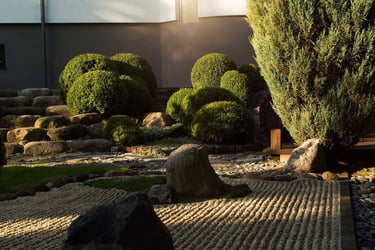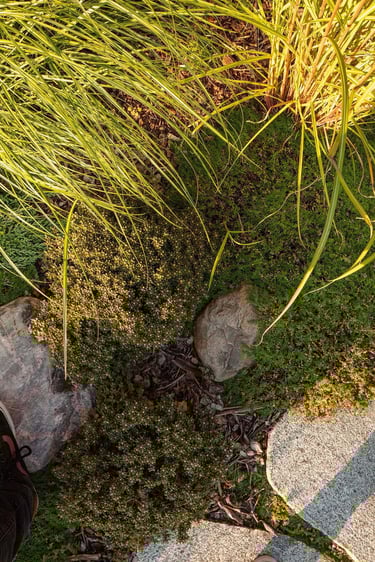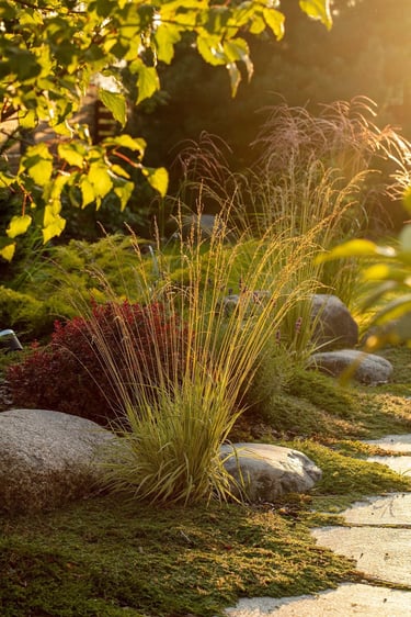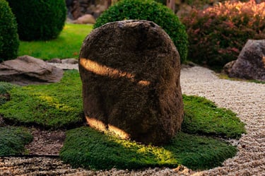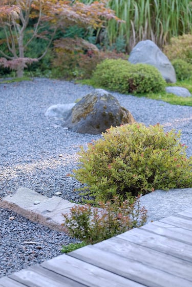 Kiekvienas šio projekto elementas buvo kruopščiai apgalvotas, siekiant sukurti harmoningą ir meditacinę erdvę. Atsakingai parinkti akmenys ir augalai vizualiai dera erdvėje, suteikia jai simbolinę reikšmę, atspindinčią rytietišką filosofiją. Visi sprendimai – nuo parinktų augalų rūšių iki vandens elementų – buvo pritaikyti esamam reljefui ir pastatų architektūrai. Sukurta vientisa ir nuosekli aplinka.
