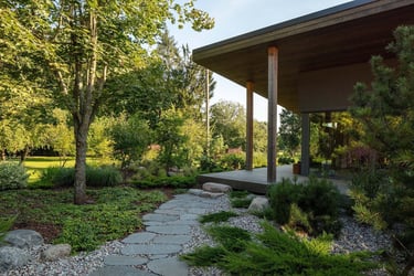 Šakių rajone, ūkininkų šeimos sodyboje, buvo sukurtas išskirtinis kraštovaizdžio projektas, kuriame darniai susilieja sentimentai, funkcija ir estetika. Didelėje teritorijoje išskleistos erdvės sujungia pagrindinį namą, svečių zoną, ūkinę dalį bei miško pakraštį į vieningą, teminę kompoziciją.