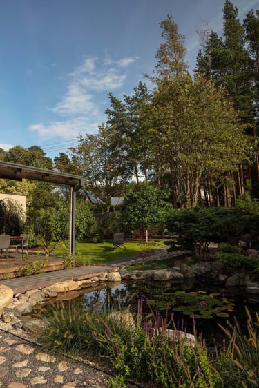 Erdvė, kurioje kiekvienas elementas prisideda prie bendros ramybės ir harmonijos atmosferos, suteikdamas galimybę šeimai ir svečiams pabėgti nuo kasdienio šurmulio ir pasinerti į japoniško sodo dvasią.