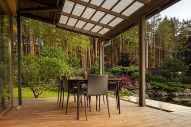 Šalia nuostabaus pušyno įgyvendintas projektas, puikiai atspindi mūsų gebėjimą sukurti išskirtinę vertę klientams. Pagrindinė užsakovo užduotis buvo sukurti sprendimus, leidžiančius visai šeimai saugiai ir privačiai leisti laiką labiau apšviestoje, fasadinėje namo pusėje, kuri iki tol buvo skirta tik reprezentacijai.